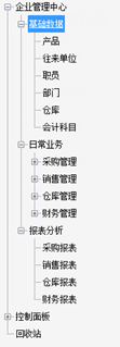 随着我们定位并浏览到一些文件夹(如上图),我们看到在企业管理中心下包含了基础数据、日常业务、报表分析等子文件夹,它们的名称都非常简单易懂,是本系统提供的几个功能大类。