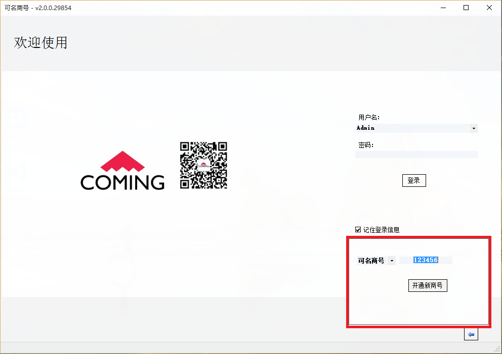 在登录界面上单击“开通新商号”,如下图红框所示区域: